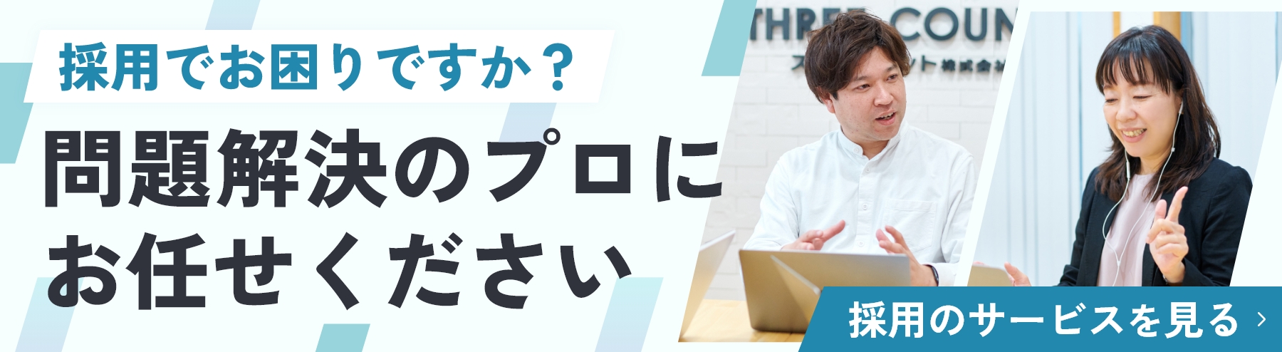 私たちスリーカウント株式会社は、これまで500社以上の集客・採用支援を行ってきました。採用サイトの制作だけでなく、Indeed・求人ボックスの運用、求人原稿の改善、効果測定まで一気通貫でサポートしています。