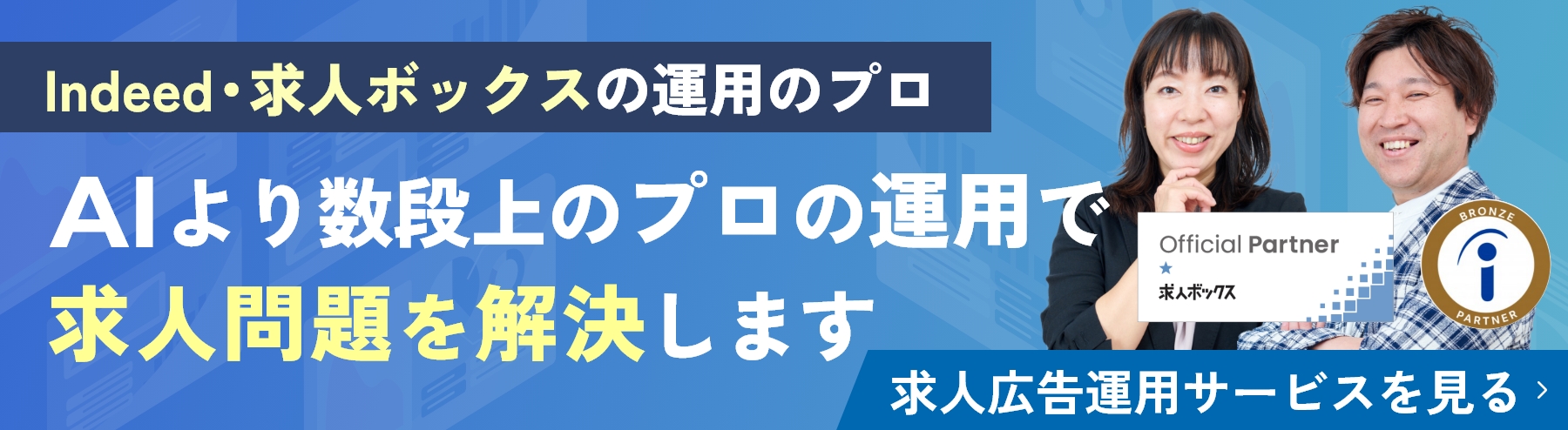 求人領域ではIndeed・求人ボックス・スタンバイの公式代理店として、求人原稿の作成から広告運用までを一気通貫でサポートしています。また、Google Premier Partner認定(2025年)・Yahoo!マーケティングソリューション セールスパートナーとして、WEB広告全般の運用実績も豊富です。