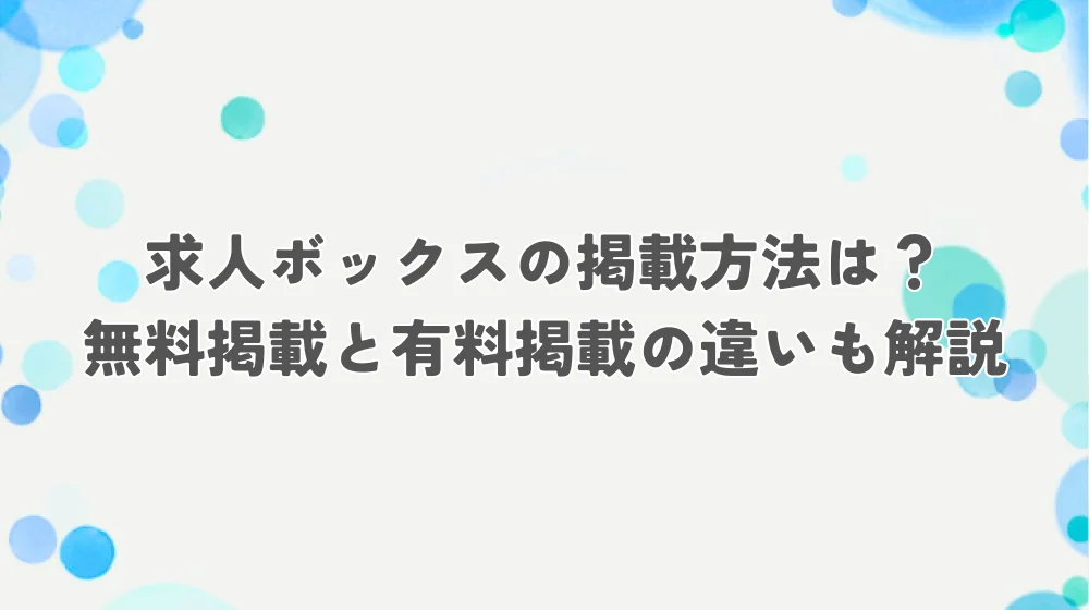 求人ボックスへの掲載方法には、無料掲載と有料掲載の2種類があります。