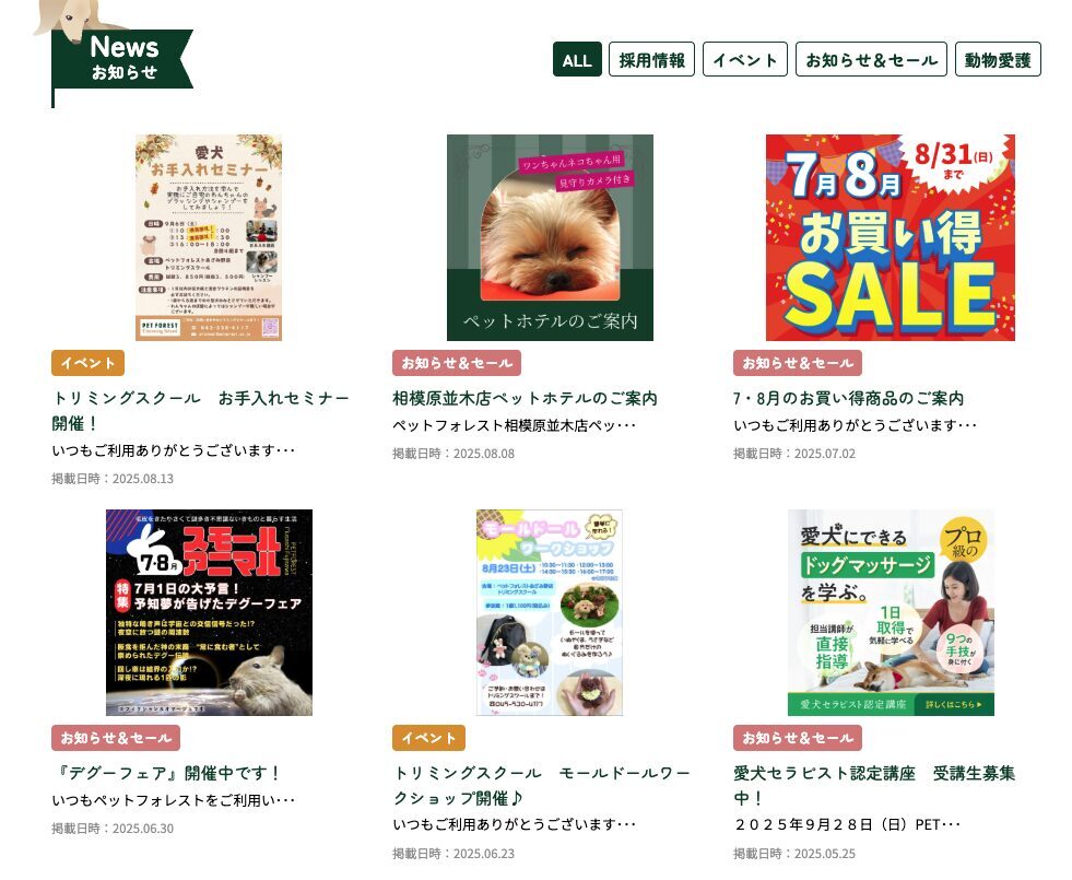 特にアクセスが集まりやすい新しい子犬や子猫などの新着情報ページは、頻繁な更新に加えてアクセスしやすい動線設計がポイントになります。