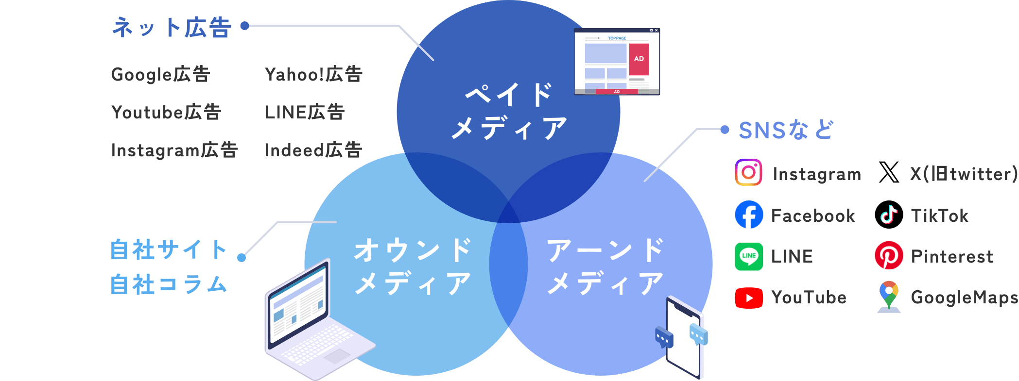 だからこそ「●●をしたら結果が出る」のではなく、「ホームページ(オウンドメディア)」「インターネット広告(リスティング広告/ペイドメディア)」「SNS(インスタグラム・ Googleマップ/アーンドメディア)」もすべてポイントを抑えて改善をしていくことが重要です。