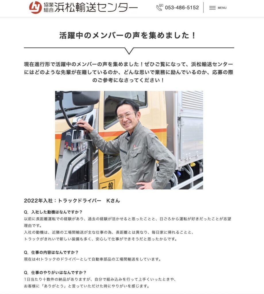 社長、社員のインタビューを実施し、会社のこれからや、どんな人とどんな環境でどんな仕事をするかなど掲載した。その結果、サイト公開後からオーガニックでの応募が入り、実際の成果にも結びついていっている。
