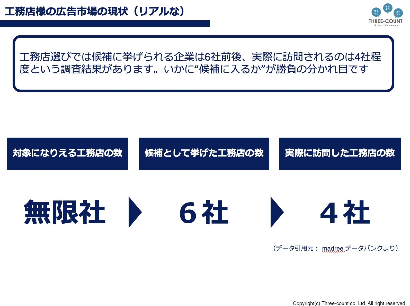 ーこの資料では、工務店様を取り巻く現在の広告環境と、その中でインターネット広告とどう向き合っていくべきかを整理しています。