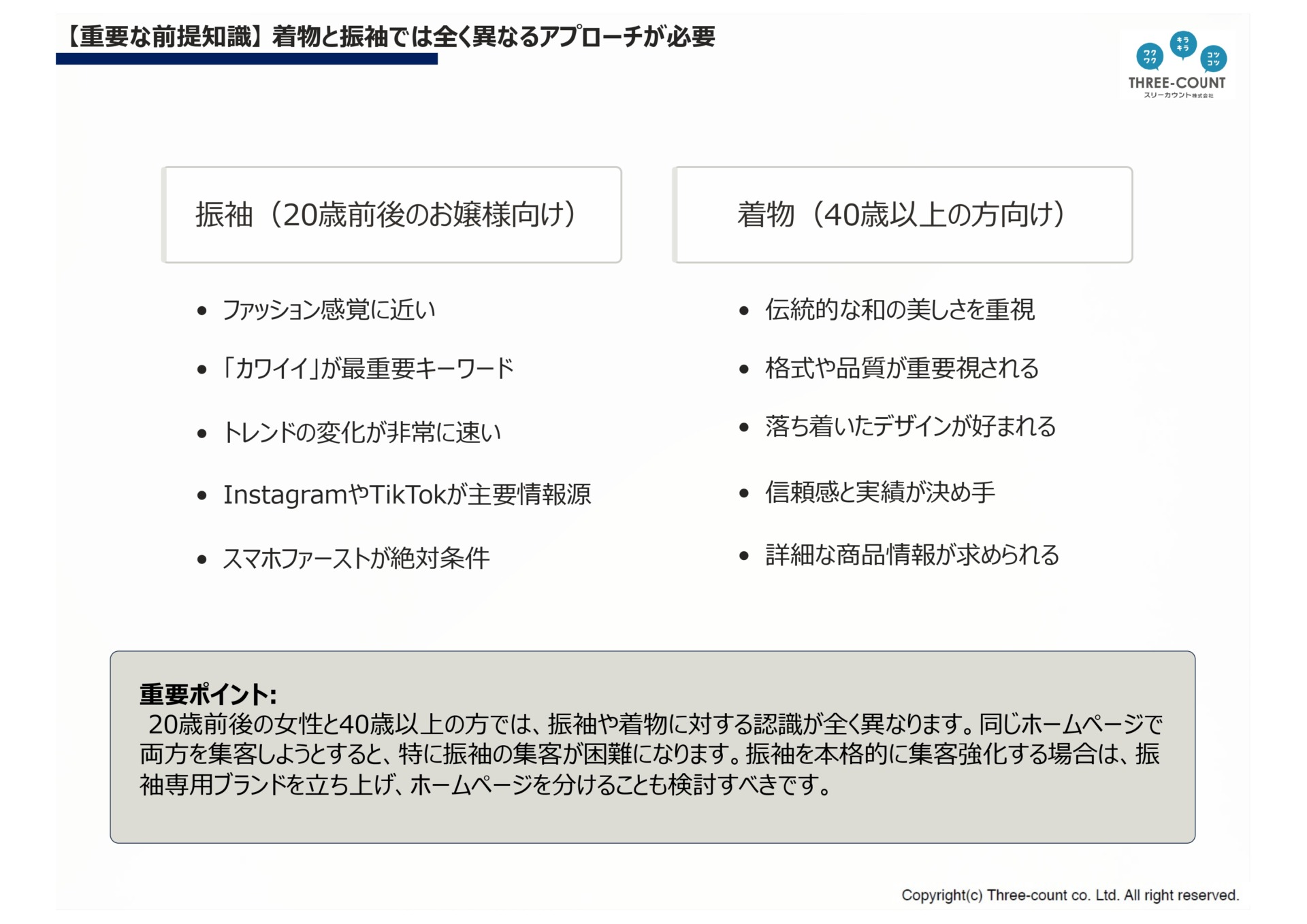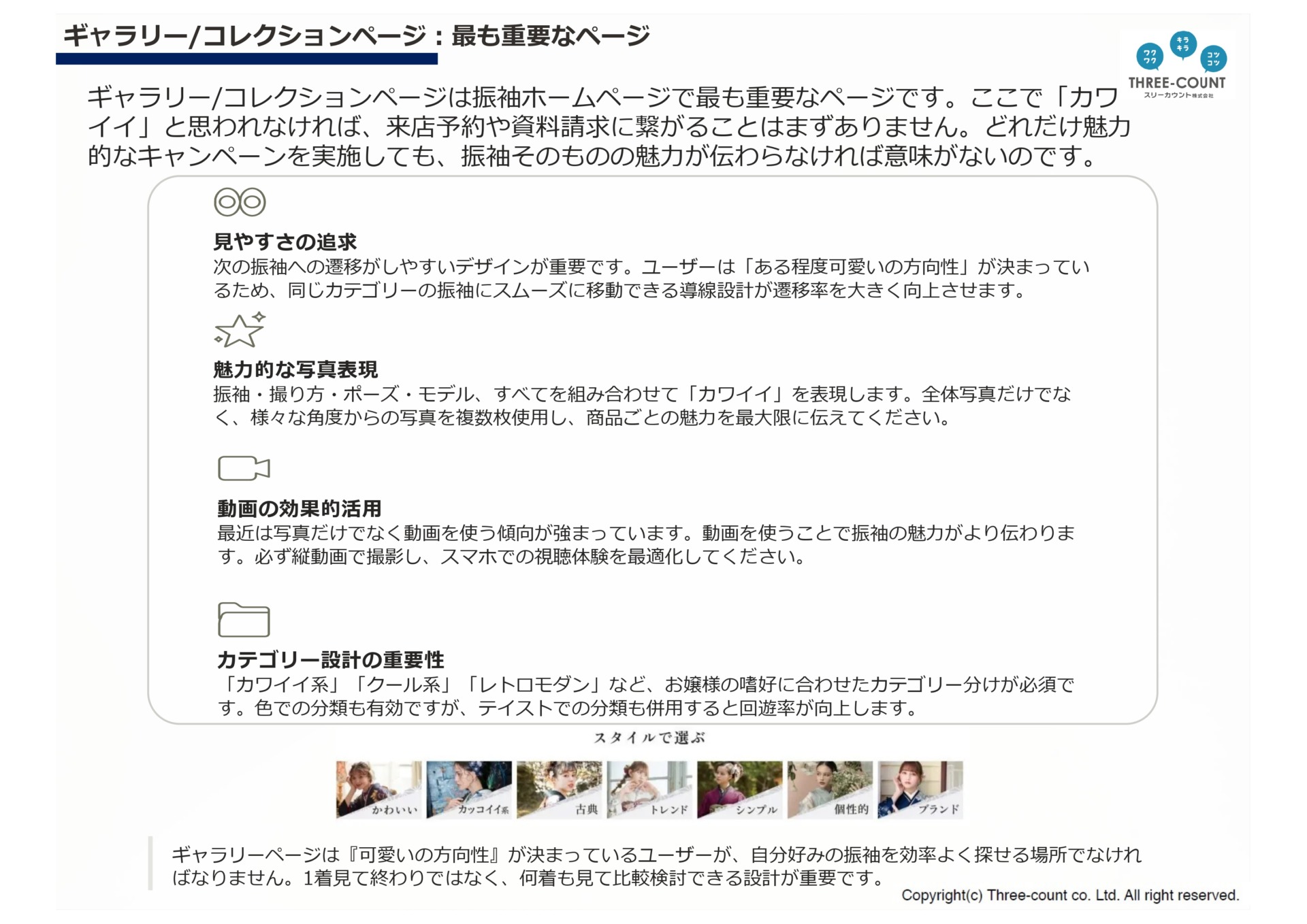本資料では、着物と振袖の違いや集客環境の変化を踏まえながら、振袖店のホームページで最も重要となるコンセプト紐解き、徹底的に解説しています。