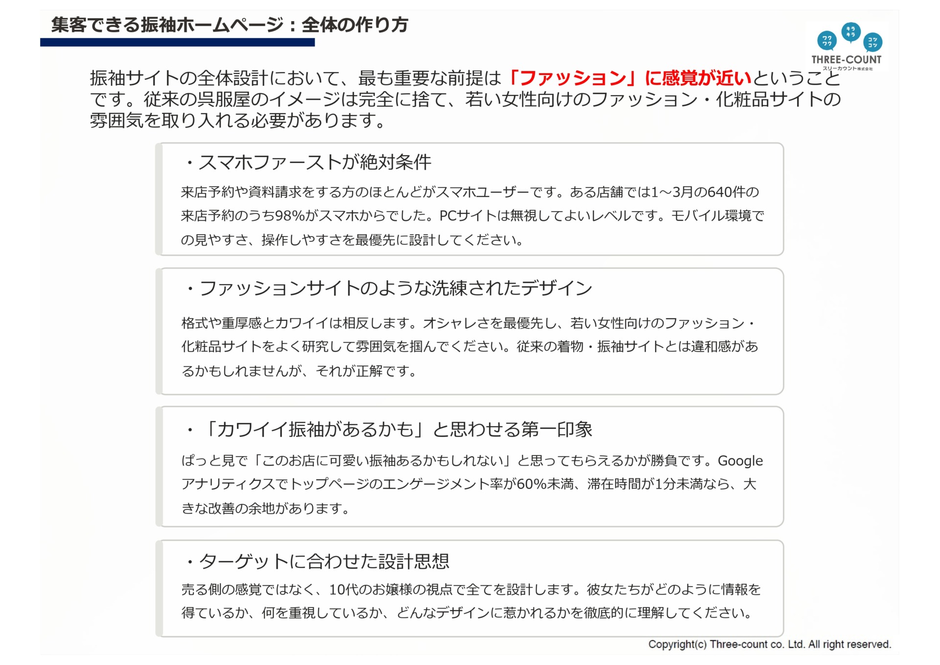 この資料では、振袖店様におけるホームページの役割や、集客につながる設計の考え方を整理しています。