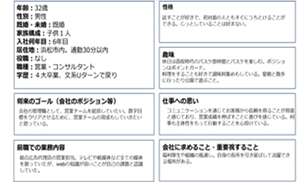ペルソナに近い視点の立場から生の声を聞き、貴社の魅力や、強み・弱み等を掘り下げ、求職者にとって魅力ある求人原稿の材料とします。