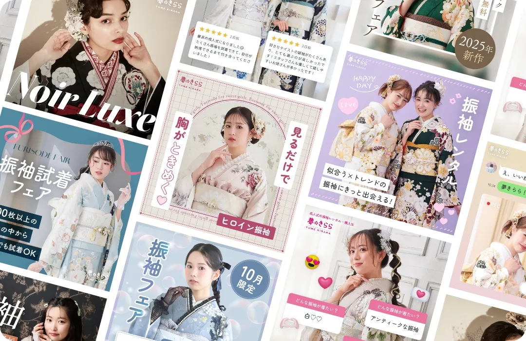 SEOやコンテンツマーケティングを使った集客から、Instagram(インスタグラム)やTiktok(ティックトック)を活用した集客まで、着物や振袖の業界を熟知しながらお客様と二人三脚で結果を出せる企業は他にはないと自負しています。